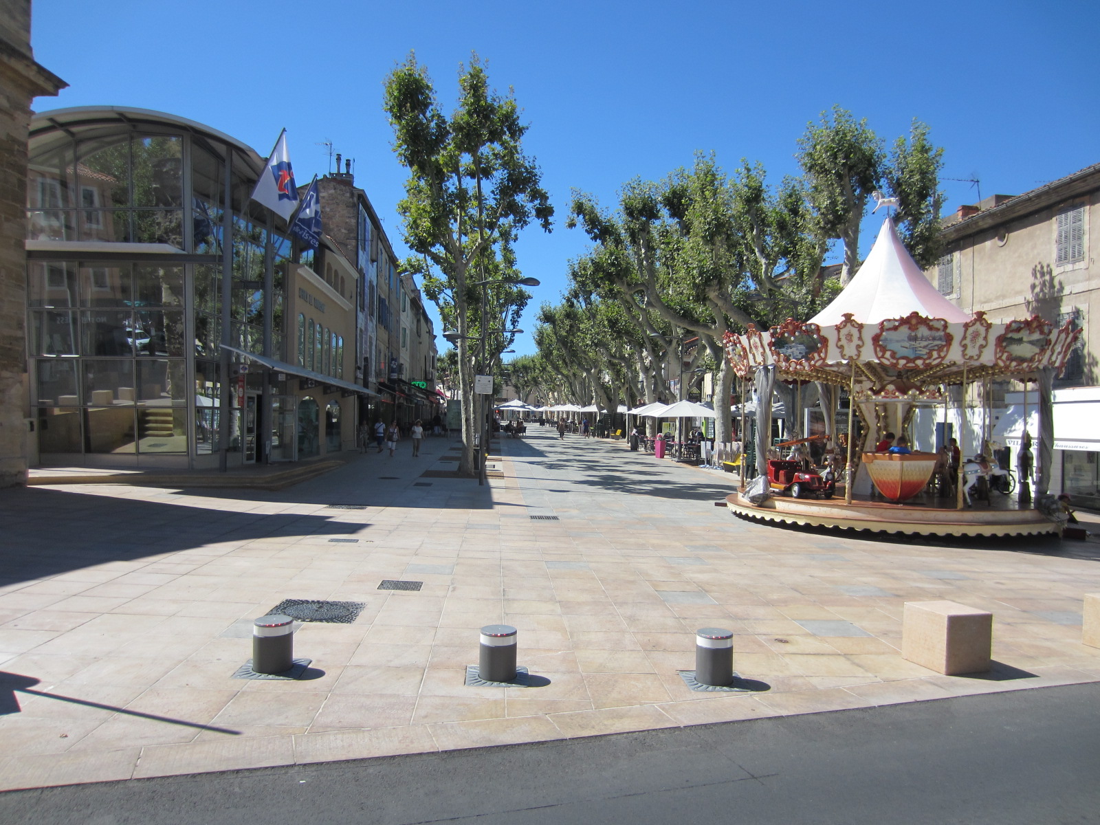 Istres vient d’inaugurer une nouvelle rue piétonne : les allées Jean Jaurès, LE centre d’Istres. Pour les piétons, et pour prendre un verre ou manger en terrasse, c’est clairement une réussite très vite adoptée (et ça a fait du bien de virer les bagnoles du champ de vision).