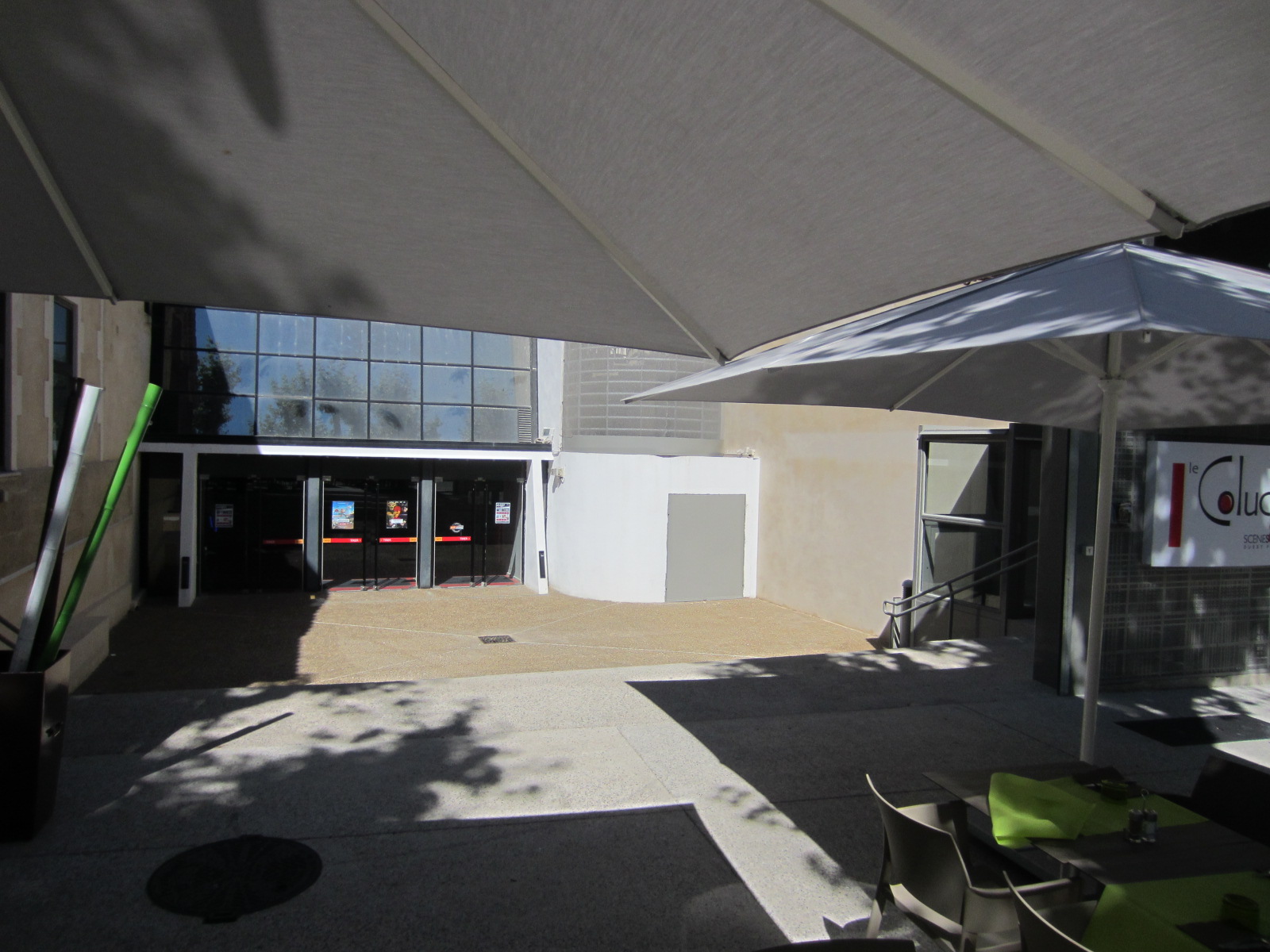 Aujourd’hui, cette rampe a disparu, remplacée par un ascenseur, et on ne peut plus attacher son vélo. Par contre l’espace est clairement assez grand en bas pour installer quelques appuis vélos du nouveau type. L’avantage serait que c’est un endroit visible depuis la caisse du cinéma. Les cyclistes cinéphiles (et les autres) apprécieraient de laisser leur vélo là plutôt que plus haut dans la rue.