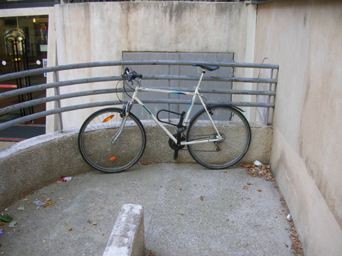 Avant on pouvait accrocher son vélo à la rambarde de la rampe pour handicapés: