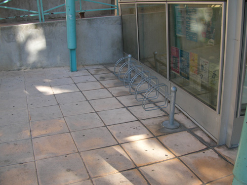 Le plus dur c’est qu’on trouve de vieux appuis-vélos dans un coin improbable (l’ancienne entrée de la piscine que je n’ai pas connue?) mais ils sont malheureusement inutilisables.