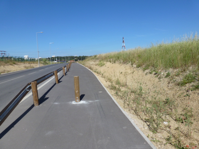 Ce bout de piste a le mérite d’exister mais elle n’est pas assez large et comporte des défauts, comme des poteaux d’éclairage au milieu de la piste, elle est par contre bien séparée de la route par un rail.