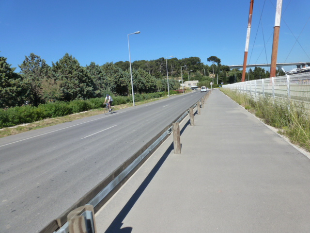 Contrairement aux précédentes véloroutes que nous avons suggérées jusqu’ici, la véloroute entre Port de Bouc et Martigues pourrait consister à prolonger judicieusement une piste cyclable existante à coté de la route (mais une construction plus ambitieuse est également possible).