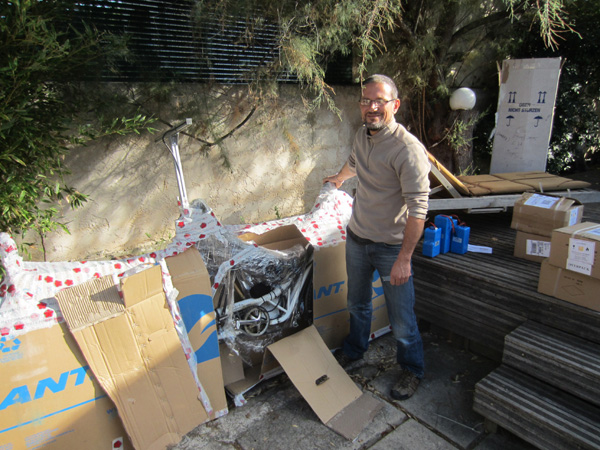 Il vient d’arriver, il est encore dans le carton… Il sera bientôt prêt à repartir!