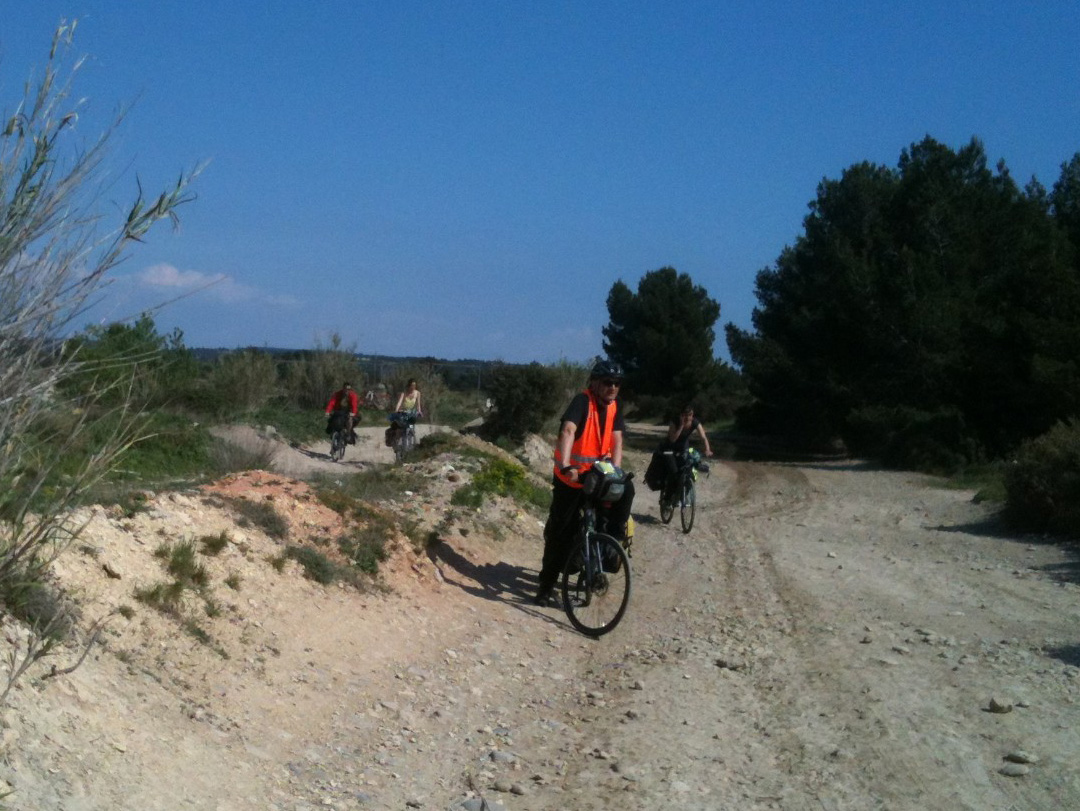 - Pour peu que notre œil s’y exerce, nous pouvons apercevoir chaque été des cyclotouristes traversant notre territoire à grand peine. Nous n’en avons pas beaucoup de photos pour le prouver, celle ci-dessous a été prise en avril 2013 lors d’un repérage que nous faisions pour notre suggestion de véloroute Istres-Fos. Ces cyclocampeurs en transit entre le Lubéron et la Camargue avaient repéré leur itinéraire sur Google Map en essayant d’éviter les gros axes. Ils se retrouvaient ainsi sur l’ancienne route de Fos, en direction du Ventillon, sur un chemin défoncé peu adapté à leurs vélos chargés, mais qu’ils auraient de toutes façons préféré aux voies rapides chargées de camions qui constituaient les seules alternatives pour eux.