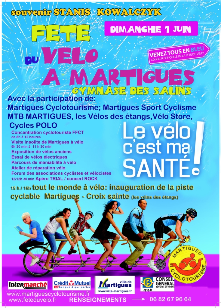 - Martigues cyclotourisme propose diverses animations de 8 à 17 h, Bourse aux vélos, réparations et réglage de vos vélos, apprendre à circuler en ville (sur zone sécurisée).