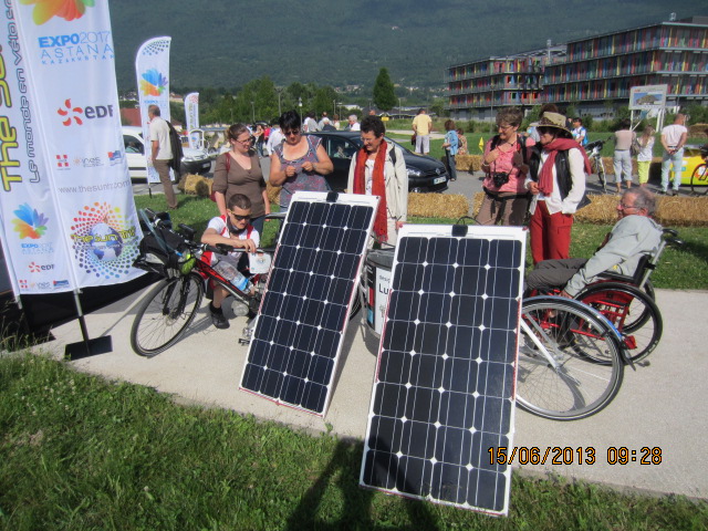 On avait suivi le départ du Sun Trip 2013, auquel 2 candidats de notre territoire avaient participé, dont Guillaume Devot, qui a fait l’objet d’un article (et adhérent depuis nos début!). Rappelons juste que c’est une course de vélos solaires (vélos à assistance électrique qui ne doivent – en théorie – se recharger que sur les panneaux photovoltaïques qu’ils emportent) qui est partie de Savoie pour rejoindre Astana au Kazakhstan.
