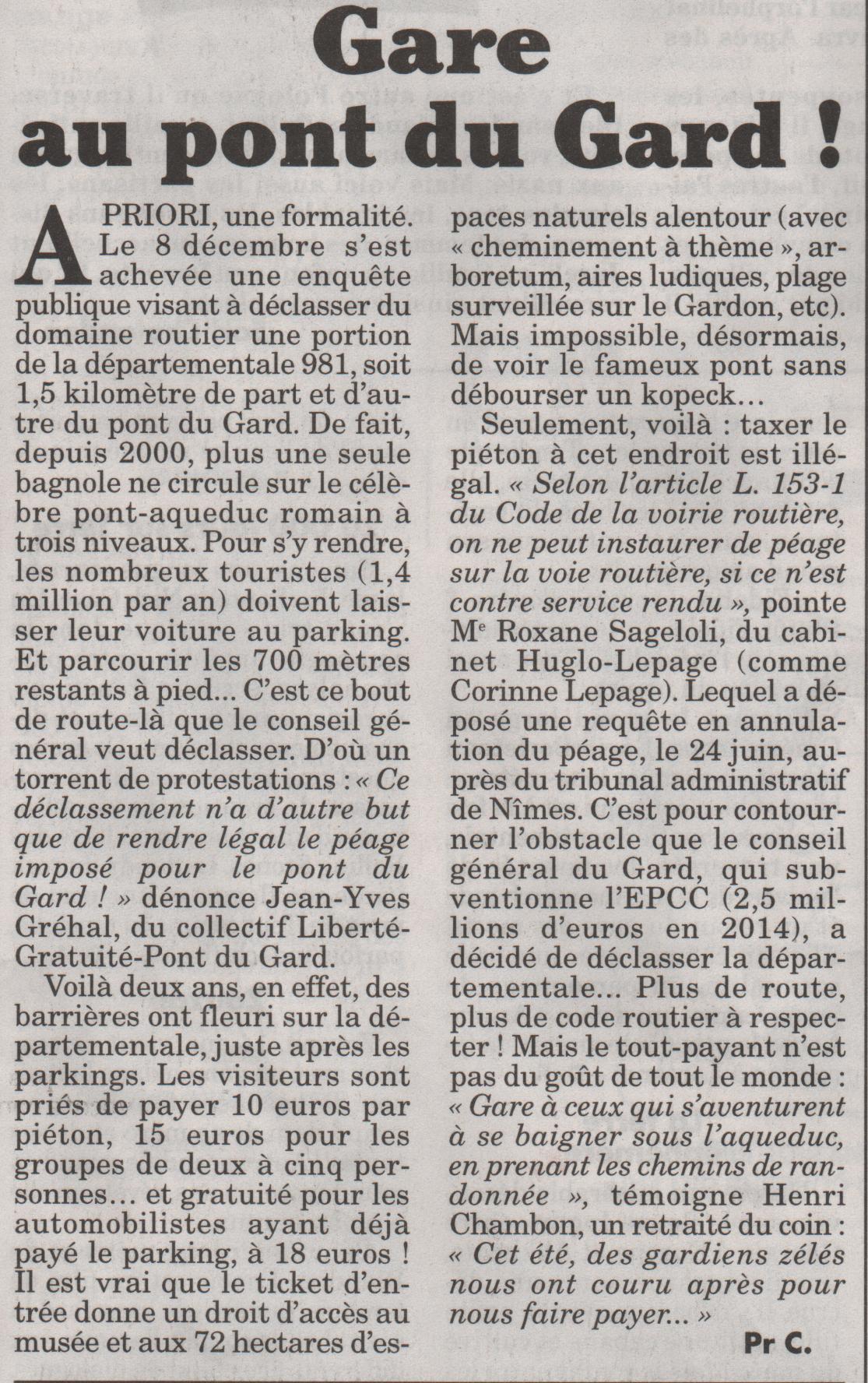 Pour une fois l’article ne concerne pas directement notre territoire, mais les cyclistes doivent s’entraider, et le Pont du Gard n’est vraiment pas loin.