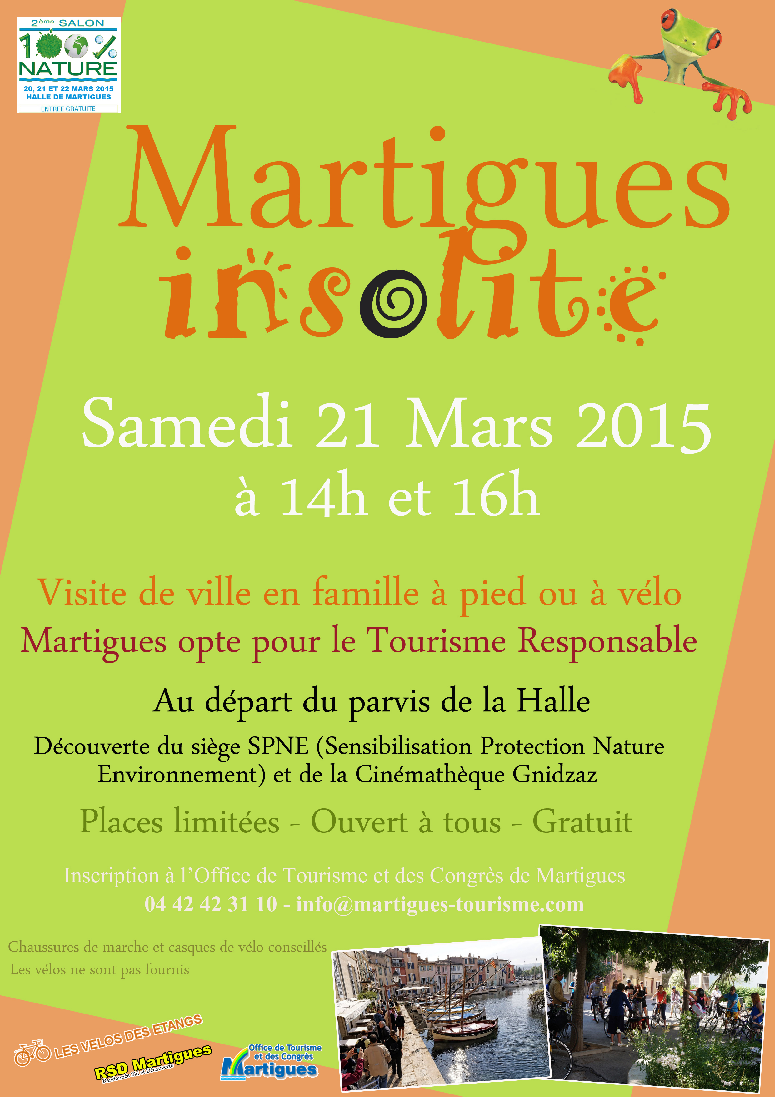 - nous serons présents au Salon Nature du 20 au 22 mars, nous avons notre stand. Le samedi 21 mars, nous proposons une visite à vélo ou à pied de la ville de Martigues, en partenariat avec l’Office du Tourisme.