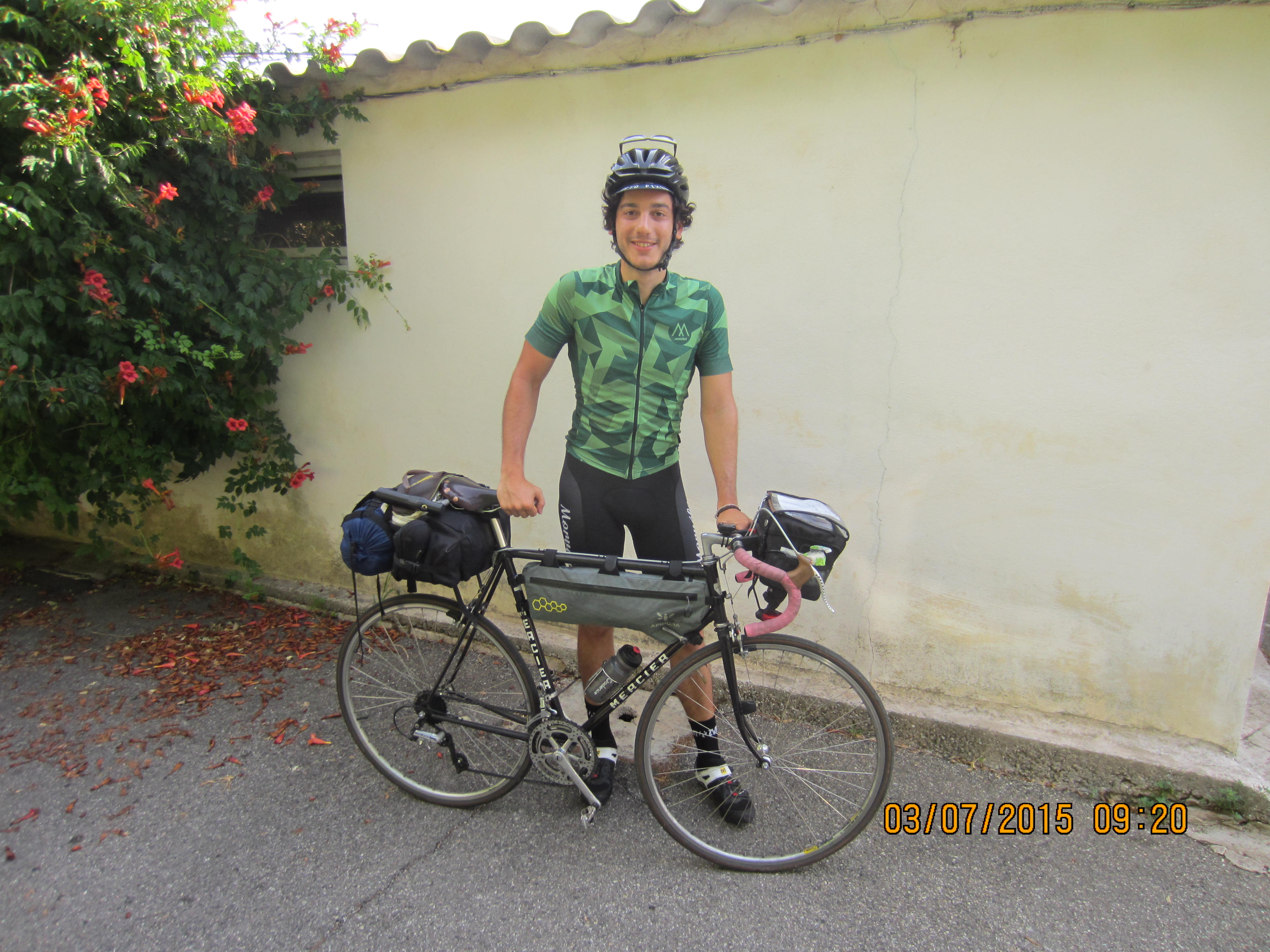 I started my trip in Barcelona where I was studying 6 months in an exchange program. I am going to Milano because my girlfriend lives there. But doing this trip was also a personal goal. I was not sure of my training but it is OK. The bike is OK too, on irregular roads I just have to ride a bit slower.