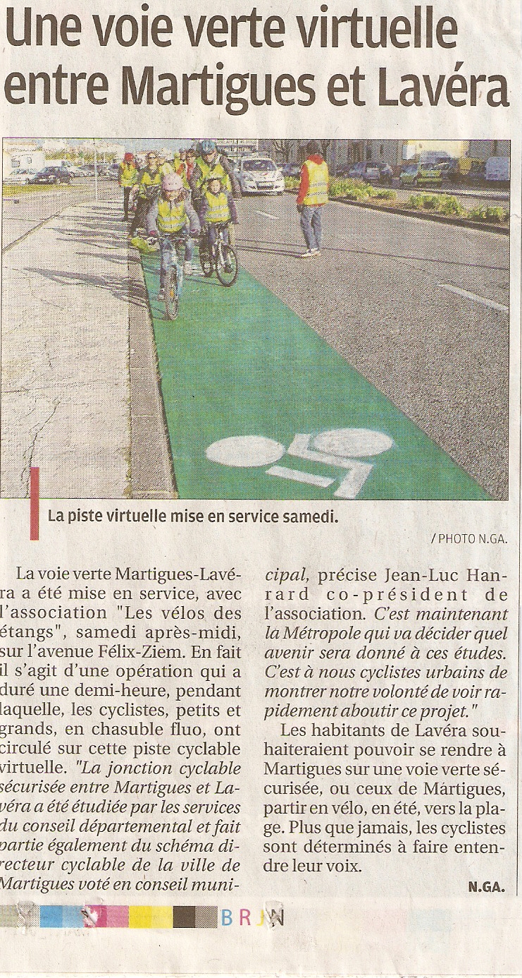 Plus sérieusement, l’intérêt était bien sûr de passer dans les médias, c’est fait, et nous pouvons vous dire que des élus ont lu les articles. LVDE rencontrera la métropole dans quelques semaines, nous ferons une piqûre de rappel. Les cyclistes doivent être visibles, pas seulement avec des chasubles, nous allons continuer nos opérations sur les autres villes de l’ouest étang de Berre.