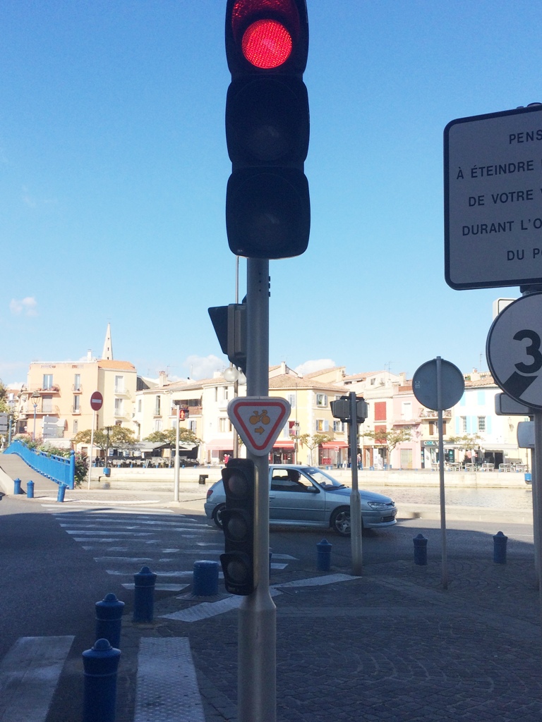 L’Île. Il est possible de se rendre n’importe où à l’Île en sécurité en passant par les rues piétonnes, Médiathèque, pointe San Crist, café associatif, etc. Franchir le pont piéton du miroir aux oiseaux à vélo est aisé. Pour les autos, le tour de l’Ile est en zone 30. Ce qui nous contrarie, c’est le bruit engendré par la circulation automobile ainsi que la pollution rue de la République, dus à l’attente aux feux. Ce doit être difficile à supporter pour les riverains et les boutiques. A noter le panneau autorisant les cyclistes à passer au feu rouge, avec précaution.