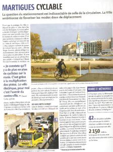 A l’entrée sud, (La Mède / Martigues) une piste cyclable a été réalisée en 2017, elle permet aux habitants de se diriger vers le centre ville en sécurité jusqu’au rond-point. Ensuite, ce rond-point entre l’ancienne route de Marseille et l’avenue Charles de Gaulle est dangereux, car les autos venant d’en bas prennent trop facilement leur priorité. l’ancienne route de Marseille est en zone 30 mais pour l’instant pas aménagée pour les cyclistes. Pas d’aménagement non plus jusqu’au groupe scolaire Aupècle. La rue Henri Belin et le boulevard Edouard Herriot devraient être aménagés dans les prochaines années, par exemple en zone 30 en sens unique avec équipements cyclistes.