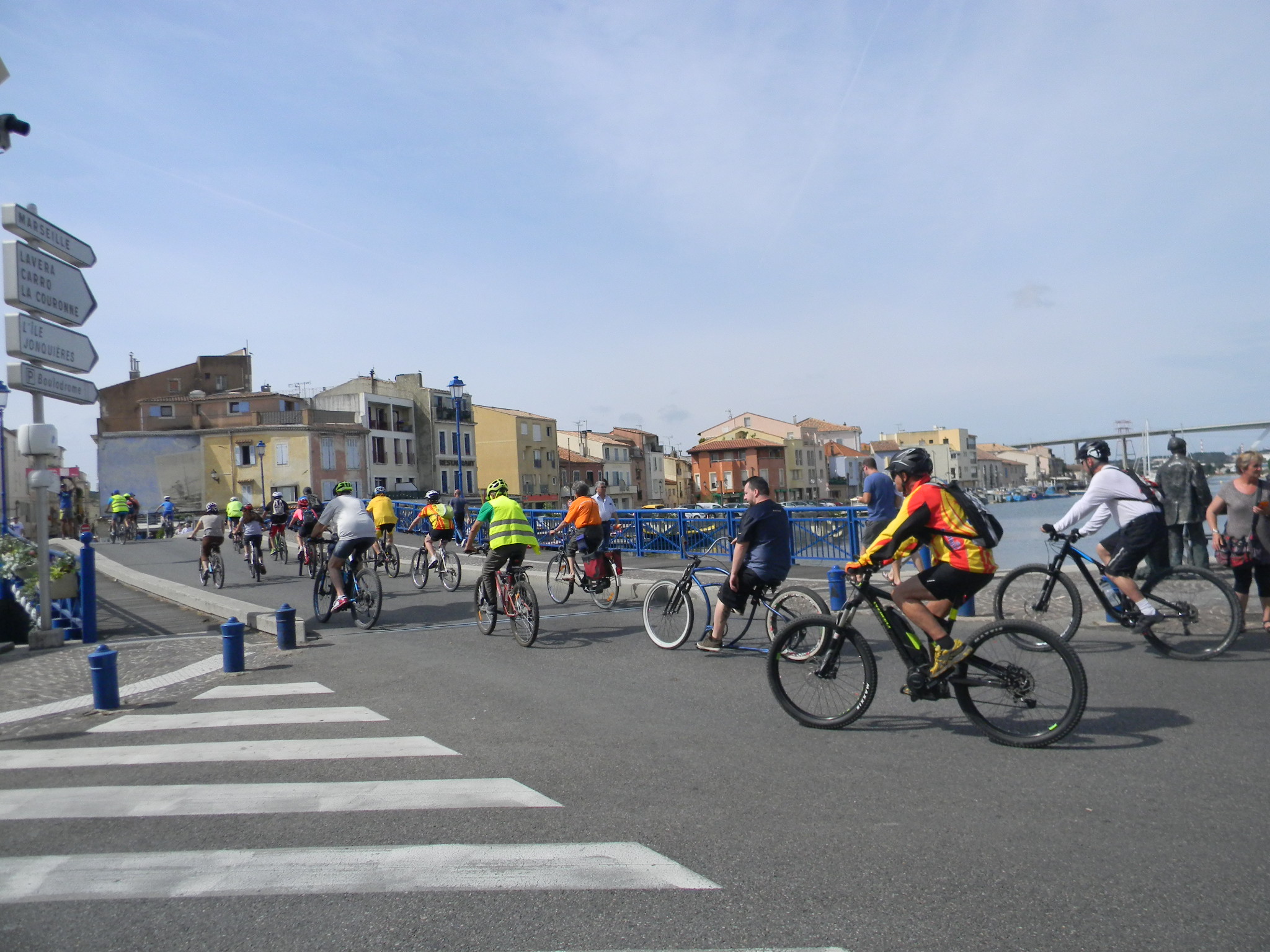 Comment peut-on rester sans agir dans notre région de France quand on pratique la bicyclette assidument comme tous les cyclos du coin ? Depuis plusieurs années, nous avons l’occasion de montrer à nos chères autorités que les cyclistes existent, qu’ils veulent des équipements qui leur permettent de rouler sans se mettre en danger de mort. Nous sommes 115 adhérents à Martigues Cyclotourisme, une centaine à LVDE, certainement plus de 100 cyclistes qui ne font partie d’aucune structure, tout ce petit monde est parfaitement en accord pour admettre que le vélo, c’est dangereux, et on se retrouve à 30 dans un défilé qui se veut à la fois festif et revendicatif. J’ai eu honte lorsque l’élue est arrivée pour nous féliciter et parler vélo quelques minutes, honte de n’avoir rien à dire et rien à montrer.
