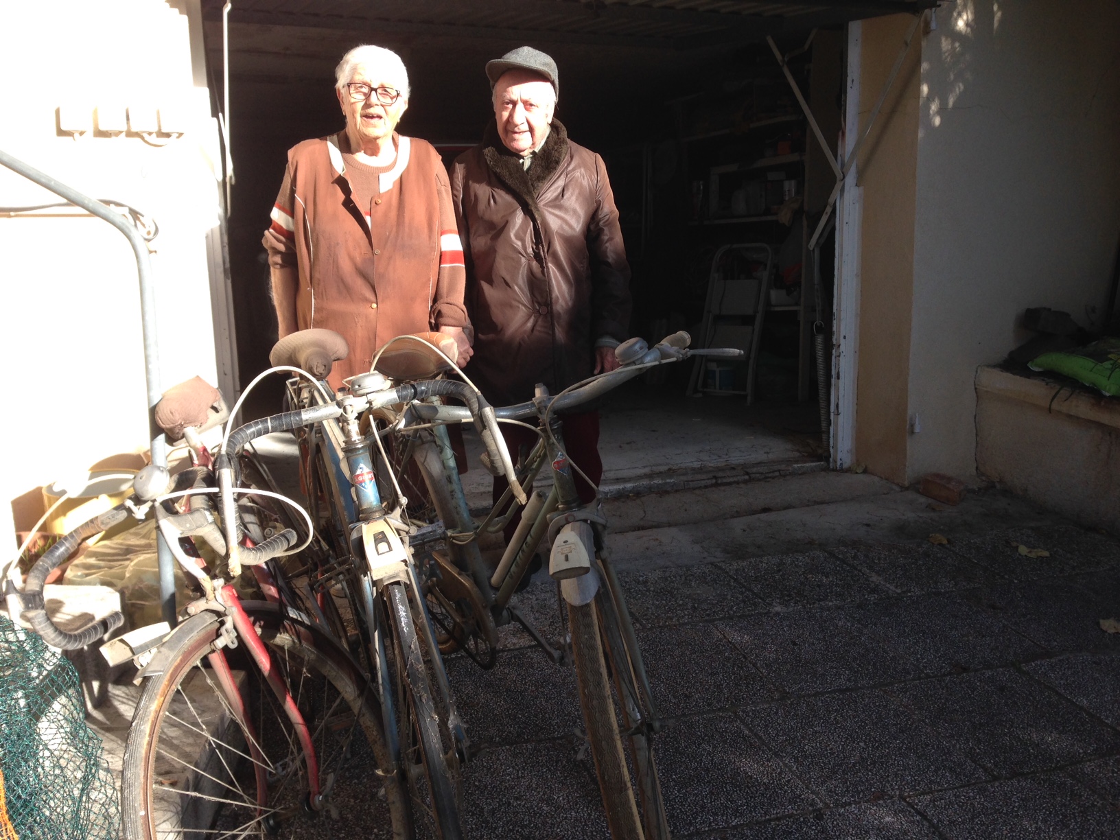 Nous avons pris pour exemple Rose et Georges, qui ont été deux véritables cyclistes puisqu’ils partaient en vacances à bicyclette. Georges est bien connu à Martigues, il était cordonnier bottier sur la place Mirabeau jusqu’au début des années 1990. Ces derniers temps, le médecin de famille leur a déconseillé fortement de continuer à pédaler. C’est avec tristesse qu’ils nous ont fait donation de leurs 3 vélos, de très bons routiers Ginet. Ils ne voulaient surtout pas qu’ils soient détruits. Ces 3 belles bicyclettes vont être lustrées à l’atelier de Martigues et attendre de futurs acquéreurs pour une deuxième vie, c’est ce que souhaitent Rose et Georges.