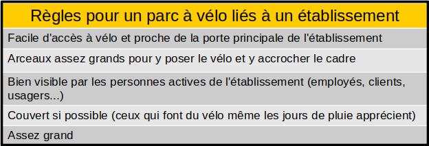 Conclusion : Les règles pour un bon parc à vélo lié à un établissement (magasin, bureaux…)