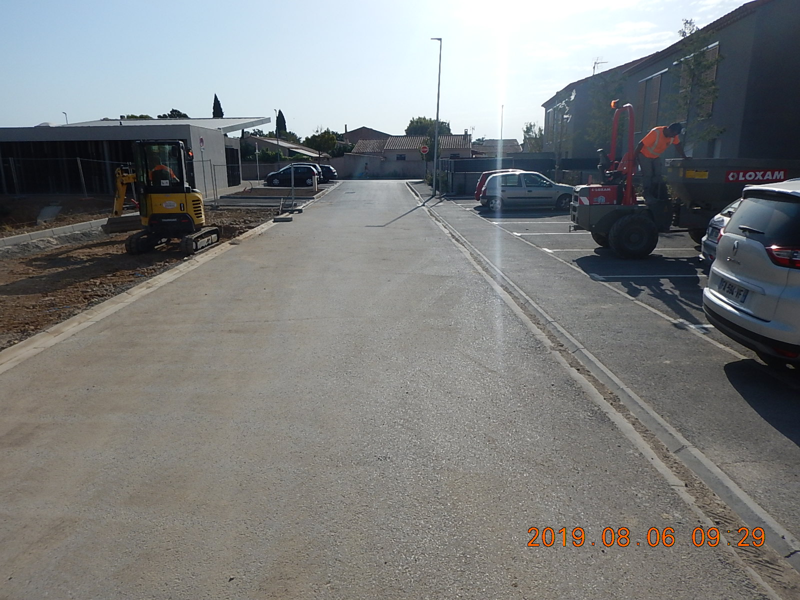 Dans Google Earth que nous utilisons souvent, cette rue se situe à la limite de la zone de floutage liée à la base aérienne d’Istres. Nous présentons ci-dessous une photo de 2016 (lors des travaux) où elle apparaît complètement. Le trait orange représente les 200 m de « piste cyclable » peints sur les trottoirs…