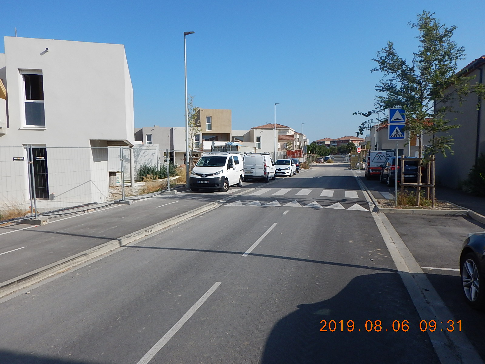 Certes la loi LAURE impose (depuis 1998 !) de réaliser des aménagements cyclables dans toutes les nouvelles voies. Mais une telle rue n’aura jamais que le trafic de ses résidents. Il aurait été plus logique de la concevoir en zone de rencontre, avec vitesse limitée à 20 ou 30 km/h. Tout le monde aurait été content…