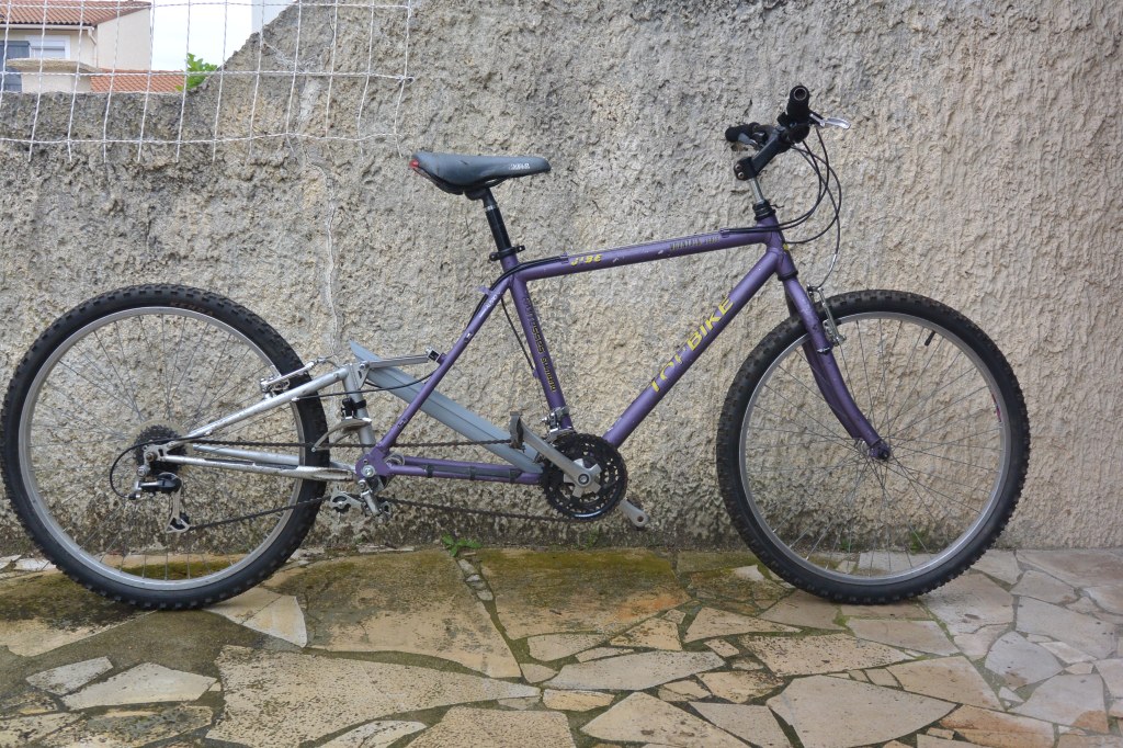 Trouvés sur un site d’annonces, le premier un VTT suspendu incomplet qui fera don de son bras oscillant.