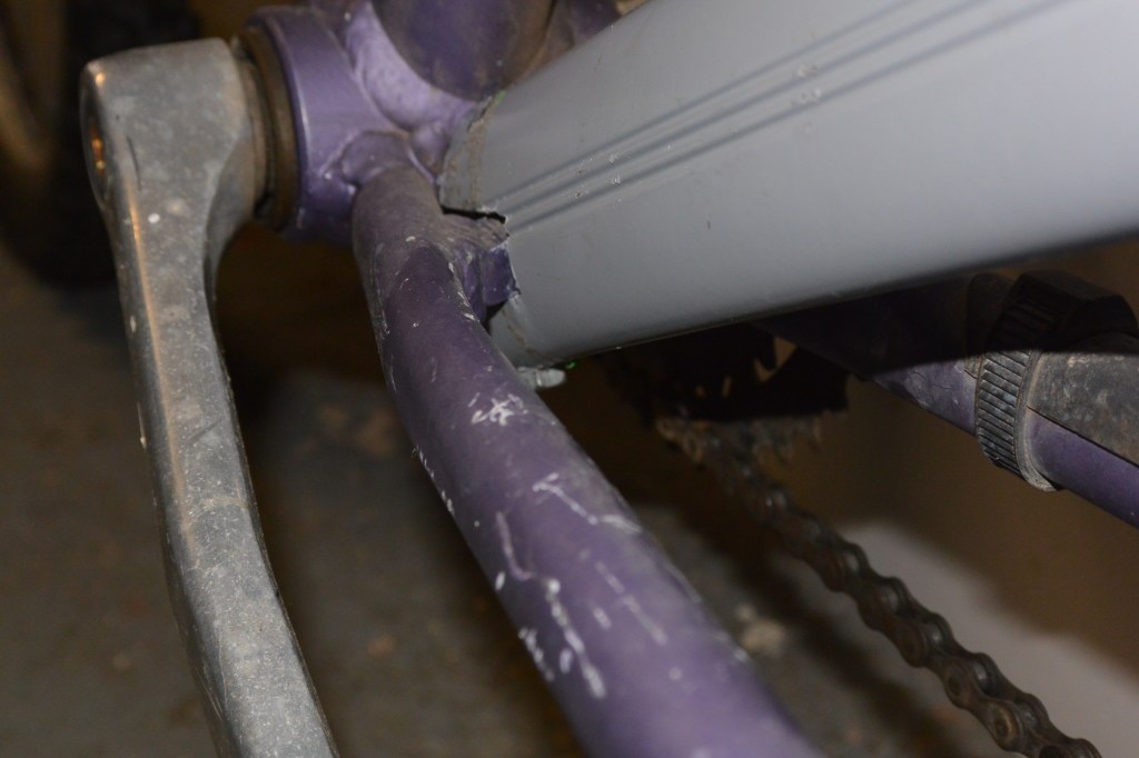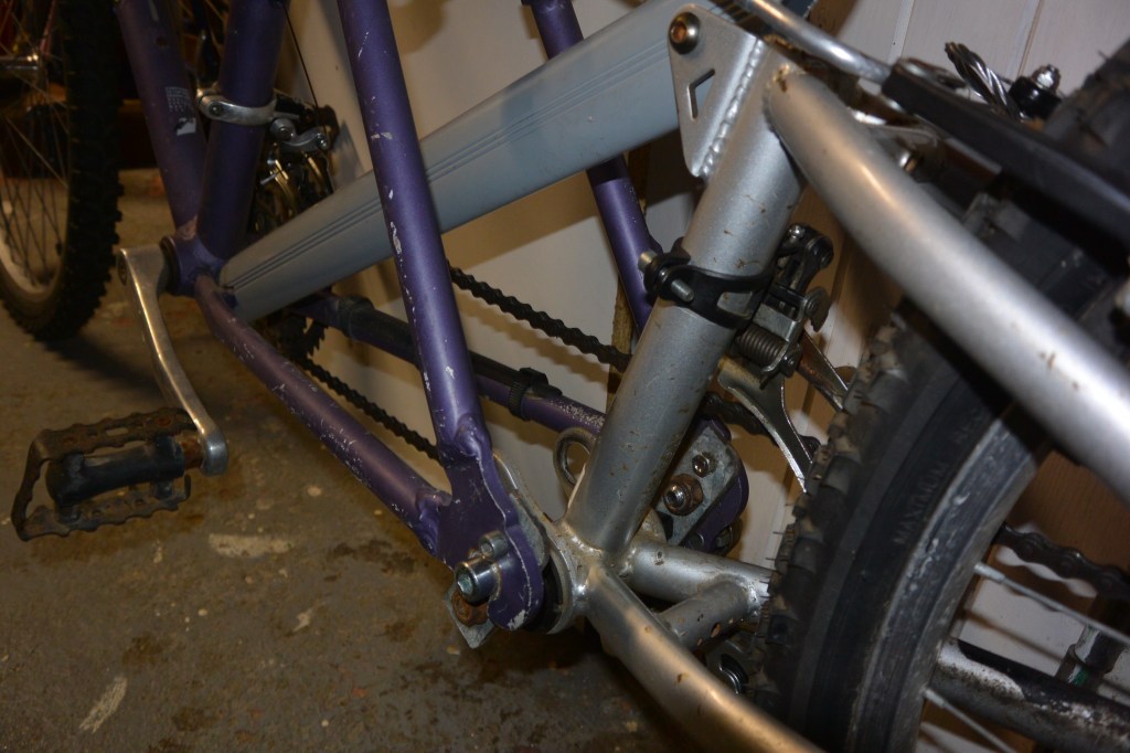 Le bras oscillant déposé du VTT suspendu sera greffé à l’arrière du VTT que j’ai acheté complet.