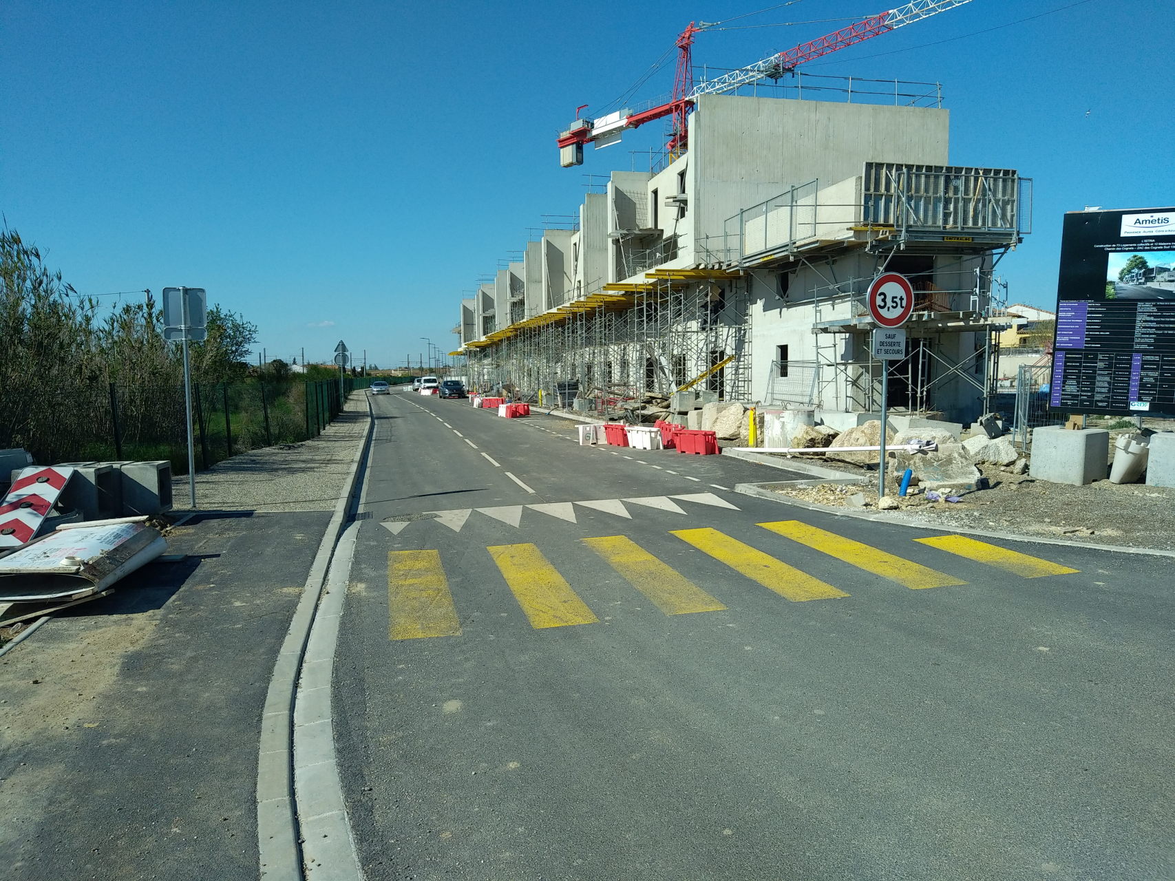 – des rues refaites sans aménagements cyclables (par exemple l’extrémité sud de l’allée des Cognets, voir ci-dessous) ce qui va à notre avis à l’encontre de la loi Laure
