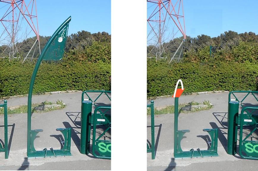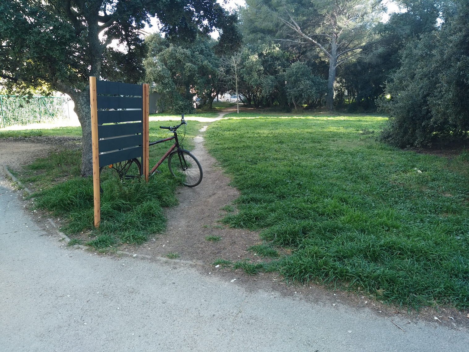 - la « régularisation » de la ligne de désir du sud du parc Guelfucci, mais malheureusement seulement de manière incomplète et malheureusement (pour le passage des cyclistes) associée à la mise en place de filtres à scooter