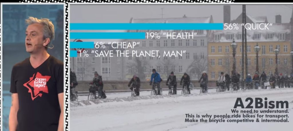 Au départ c’est un photographe et blogueur, dont nous avons un peu parlé dans notre précédent article sur le Cycle Chic. Vers 2005, il s’est aperçu que sa ville, Copenhague, avait une spécificité encore méconnue : son importante avance sur la part de la population qui se déplace à vélo. Il s’est convaincu que ça venait d’une infrastructure mieux conçue qu’ailleurs qu’il était possible de copier ailleurs.