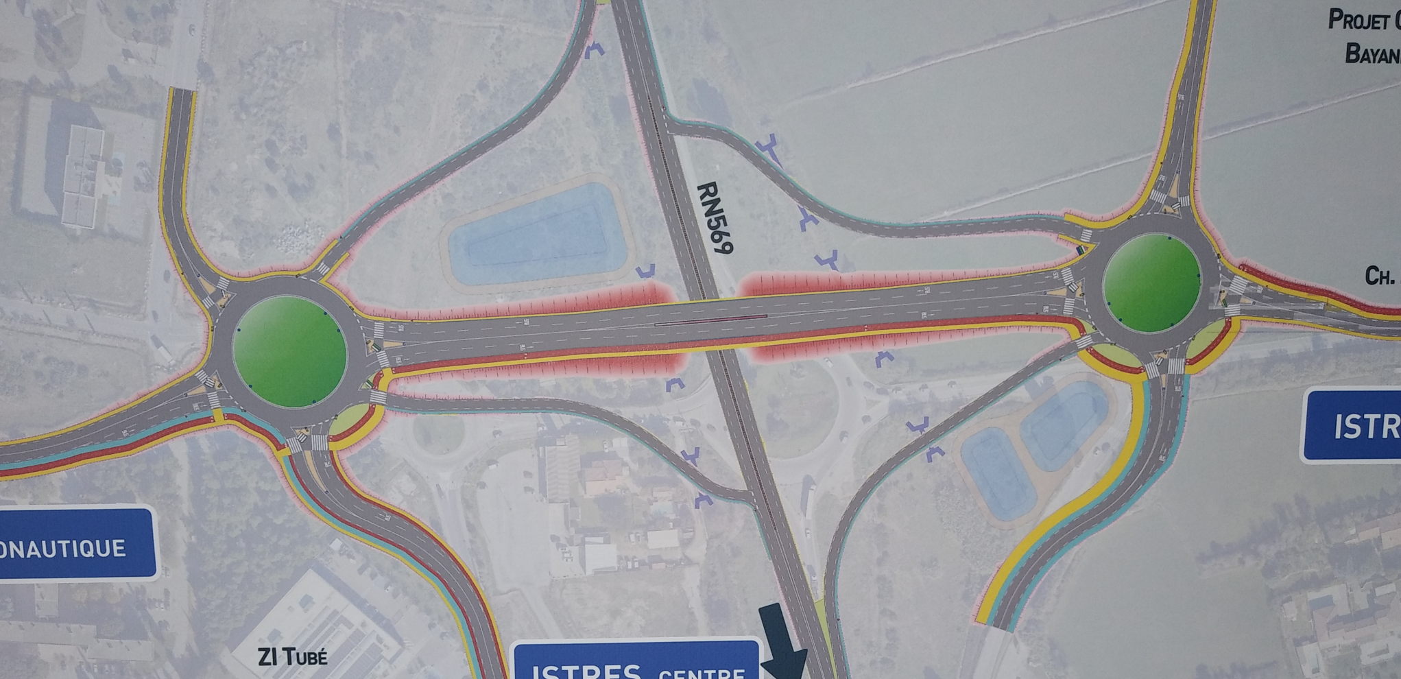Il est prévu par la municipalité et/ou la métropole AMP (le maître d’ouvrage semble être la métropole mais sans que nous en soyons sûrs) de remplacer l’actuel rond-point des Bellons sur la « route de la Transhumance » (RN569) par un pont et 2 ronds-points (et une nouvelle rue vers le nord-est…) . Le but affiché est de « traiter la congestion » de ce rond-point….