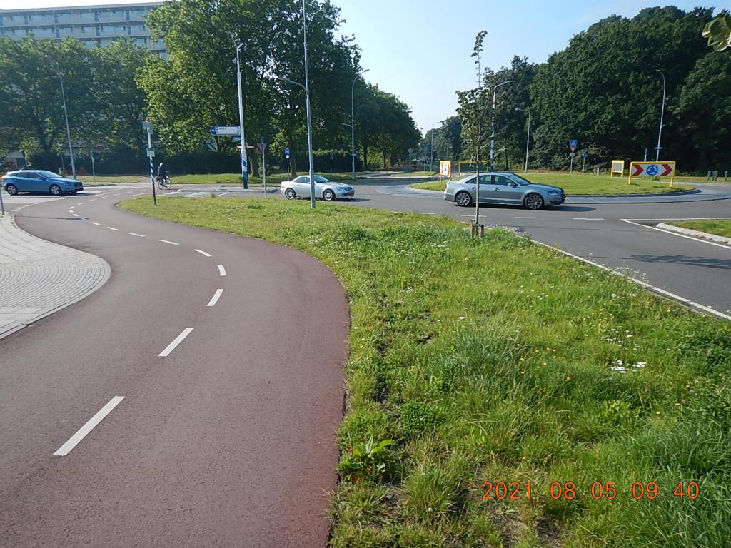 Mais alors que les ronds-points français sont souvent des points noirs de la circulation à vélo (par exemple le rond-point Nelson Mandela à Istres, voir notre article de 2014, resté malheureusement valable) je me suis senti en sécurité sur les ronds-points hollandais. Ces ronds-points respectent les règles suivantes :
