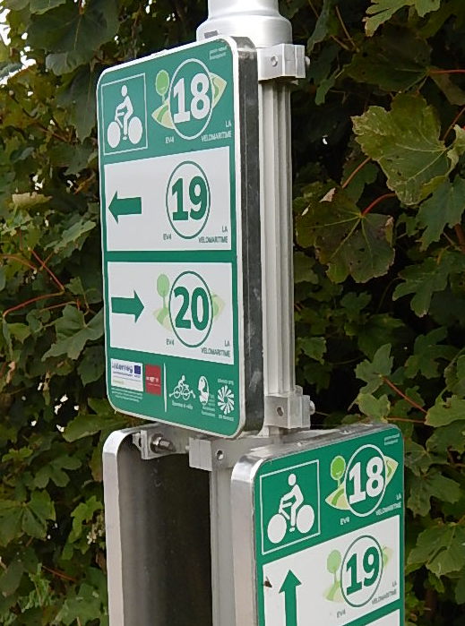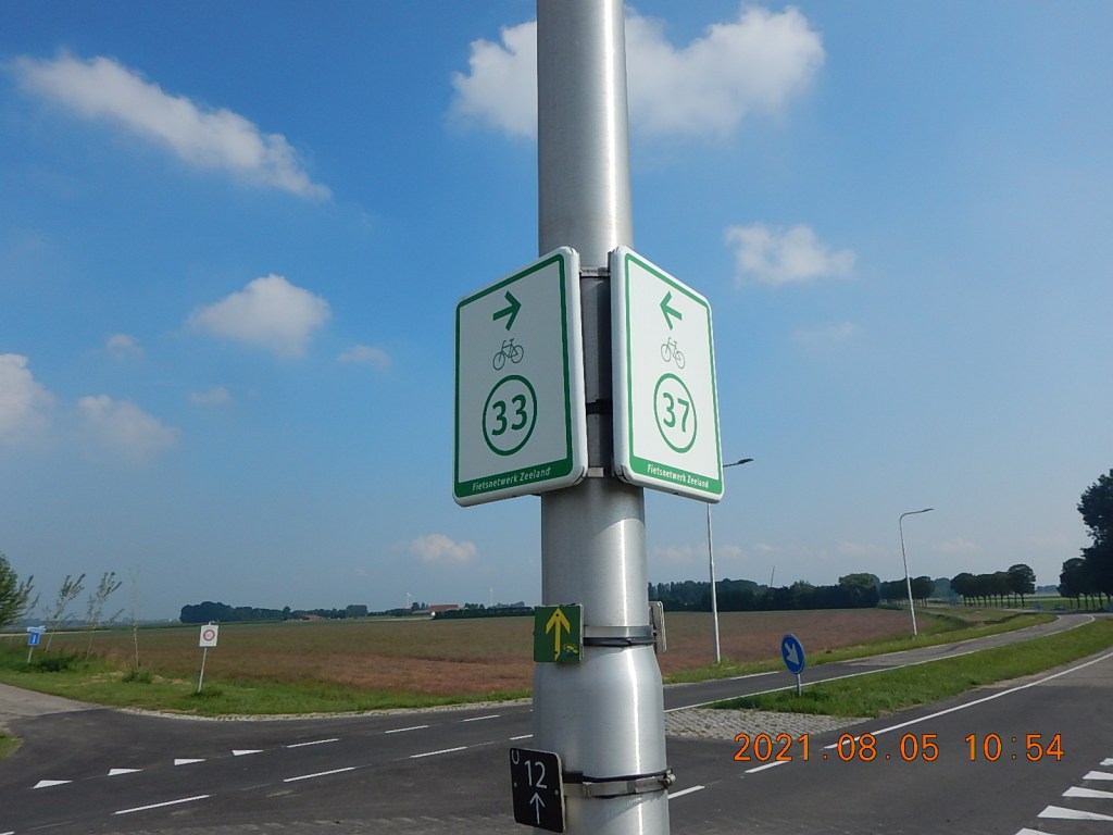 Le réseau hollandais de pistes cyclables interurbaines est très dense. J’ai été surpris de voir des panonceaux réservés aux vélos dont les numéros changeaient régulièrement (sans logique mathématique apparente) alors que j’allais tout droit. En fait j’arrivais à un point numéroté (knooppunt) et on m’annonçait le prochain.
