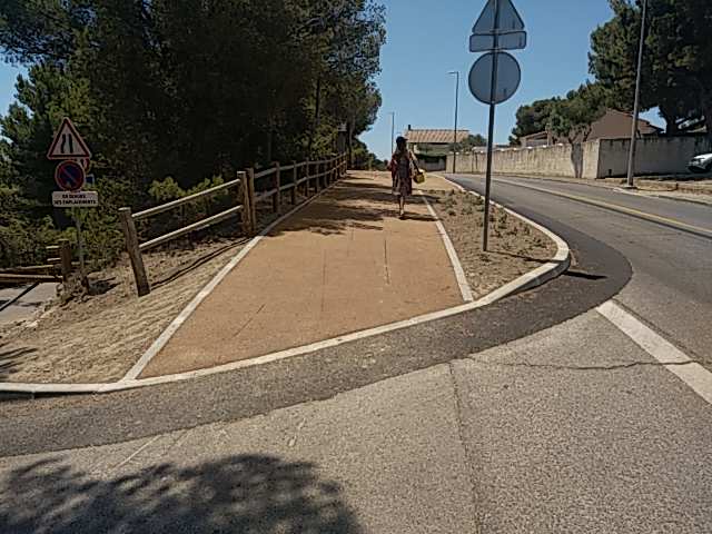 On peut remarquer que les bordures ont été bien surbaissées, il n’y a pas de « marche » (comme il y a par exemple sur celle qui passe au niveau du CEC) qui sont parfois si désagréables que les cyclistes préfèrent rouler avec les voitures pour cette raison. Globalement cette voie verte sera agréable pour les fauteuils roulants, les bébés en poussettes etc… en plus des cyclistes.