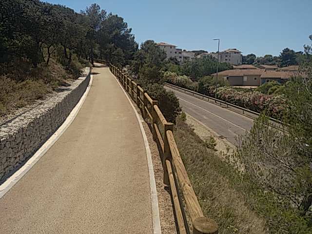 Rien à dire sur l’aspect paysager de cette voie verte : l’agrément de cet équipement est incontestable car il est désormais possible de pédaler en toute sécurité avec des points de vue magnifiques sur l’étang. Cet axe 4 Vents > Rond point de la route de St Chamas est vraiment une réussite.
