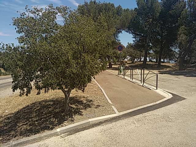 Elle arrive ainsi au parking de la Romaniquette, juste au niveau des points d’apport volontaires (PAV) des recyclables. Ce point posera problème, car on y voit l’été des voitures garées qui obligeront les cyclistes à ralentir exagérément. Le reste de l’année, un cycliste pourra y rencontrer une voiture arrêtée le temps de mettre ses recyclables dans le PAV. Les conflits sont possibles et ce point devrait être revu.