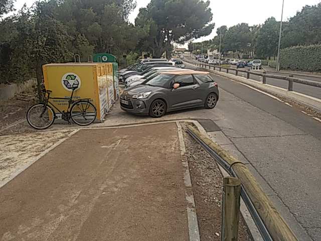 D’autres « bémols »: Le parking devant les containers ( Points d’Apports Volontaires) n’étant pas suffisants, les voitures sont garées près du rocher raboté et sont donc passés sur la voie verte, dont le revêtement n’est pas étudiée pour un passage de voitures.