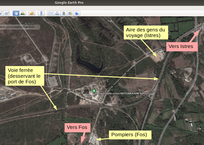 Le grillage qui empêche théoriquement de traverser la voie ferrée est régulièrement déchiré, peut-être par les cyclistes, peut-être par les amateurs de moto-cross venus de Fos-sur-Mer, car à l’endroit de la traversée se trouve, côté istréen, un terrain de moto-cross « sauvage ». Ce terrain existe depuis très longtemps et est très utilisé. Quelqu’un l’a même référencé sur Google Earth sous le nom « MOTOBEKANE KROSS ». C’est peut-être un spot connu des amateurs…
