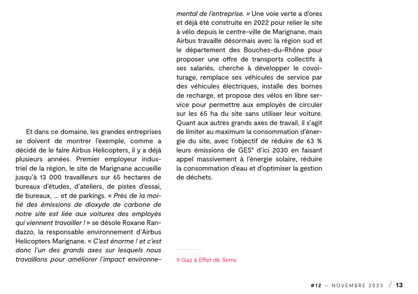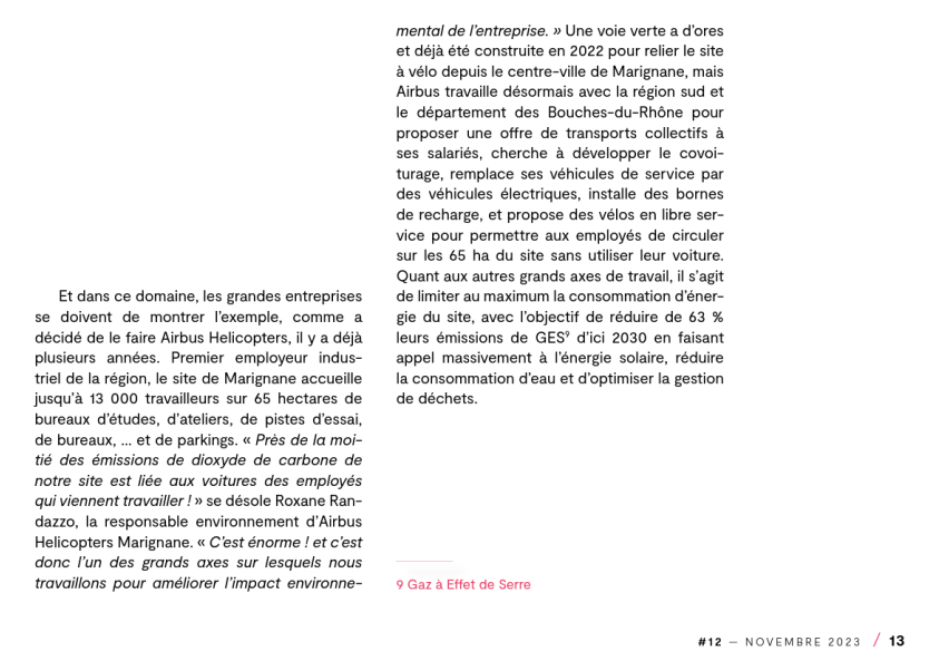 En effet, dans un reportage sur le développement local de l’industrie aéronautique (dont l’impact présent et à venir sur le réchauffement climatique est calamiteux) on peut au moins lire qu’Airbus Helicopters se préoccupe de l’impact du trajet domicile-travail de ses salariés.